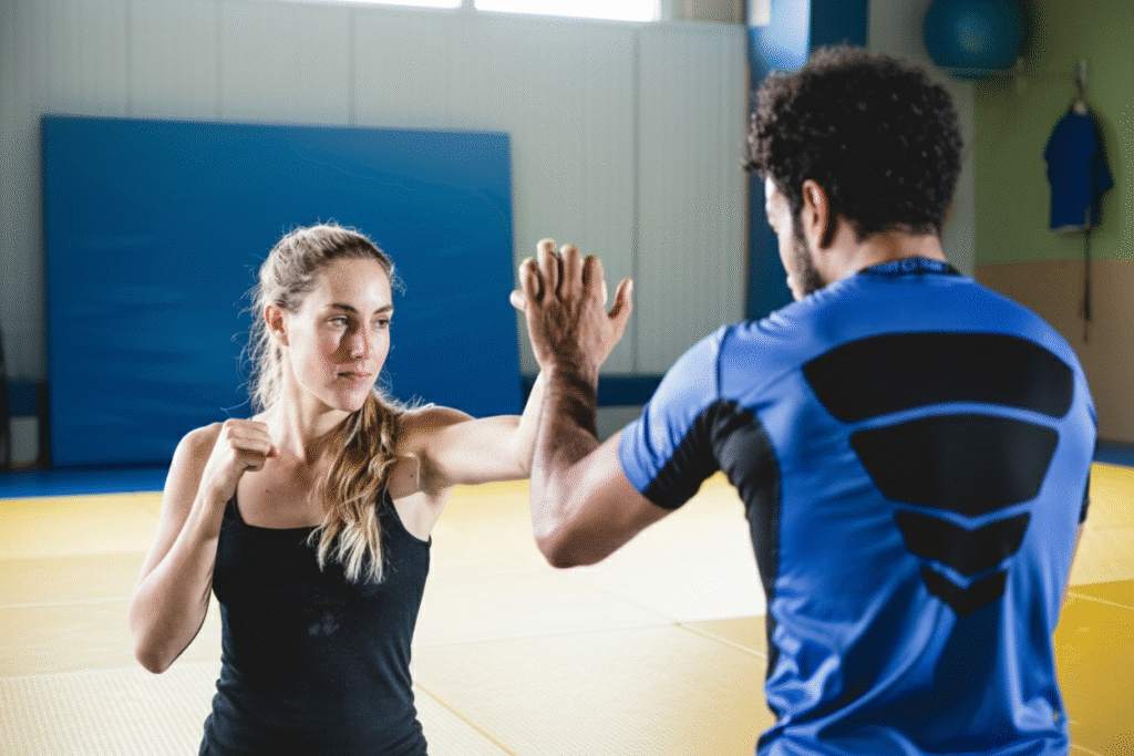 La self-défense est une discipline pratique et accessible qui vise à apprendre des techniques simples et efficaces pour se protéger en cas d’agression. Contrairement au combat sportif, l’objectif n’est pas d’affronter l’adversaire mais de se mettre rapidement en sécurité. Les situations d’apprentissage s’appuient sur des scénarios concrets : saisies, menaces, coups directs… Chaque mouvement enseigné est pensé pour être réaliste, intuitif et applicable dans la vie quotidienne. Cette pratique renforce la confiance en soi, la réactivité et le contrôle émotionnel, tout en sensibilisant au respect de la loi et à la notion de légitime défense.
